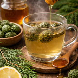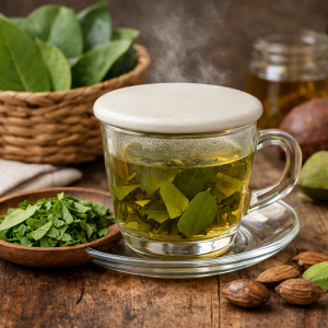 Hierve el agua, añade las hojas y cocina durante 10 minutos. Deja reposar, cuela y agrega el jugo de limón.